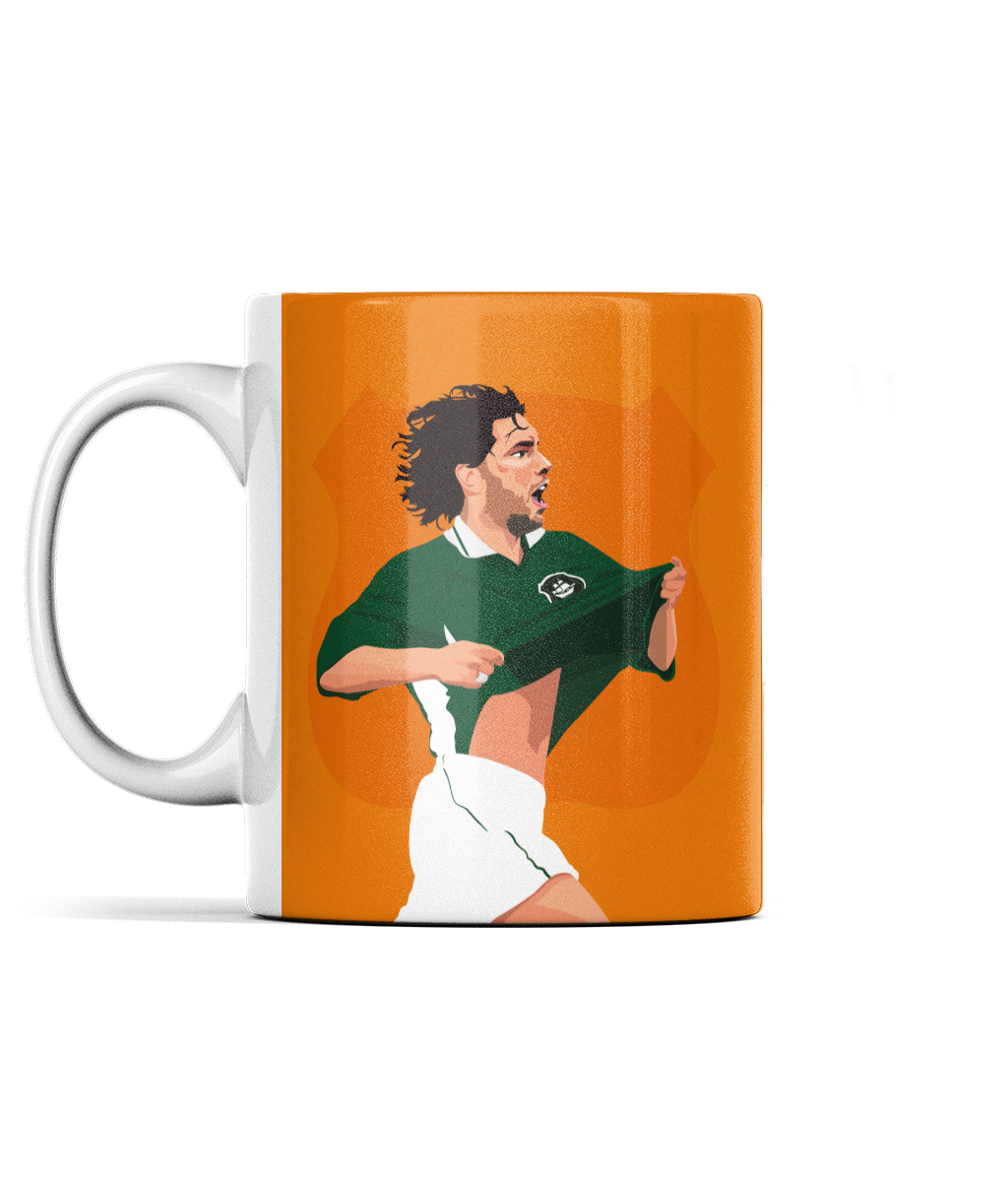 Celebrate one of Argyle’s most memorable moments with this bold 11oz ceramic mug featuring a striking illustration of David Friio. Set against a vivid orange backdrop, the design captures Friio mid-celebration, gripping the shirt with intensity and pride.